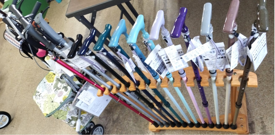 歩行器、シルバーカート、杖、ポータブルトイレなどを紹介していただきました。